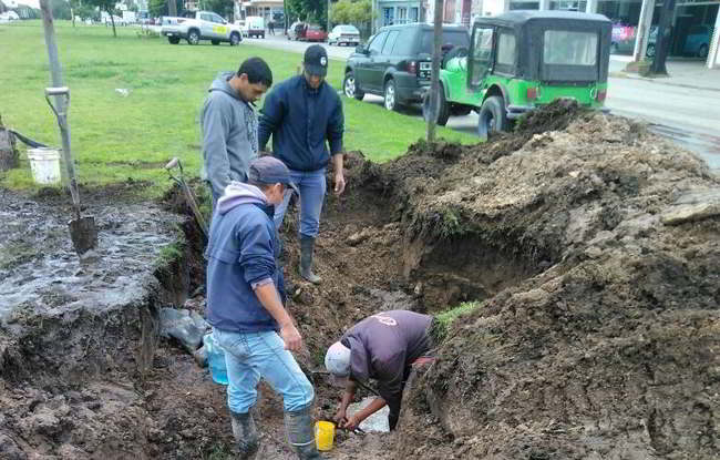 Además, también con personal y maquinaria municipal, se está reparando una insistente perdida sobre el boulevard de la av. 59 y 28.