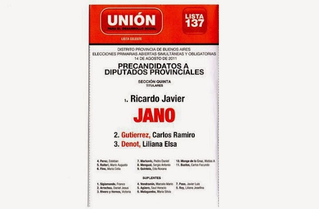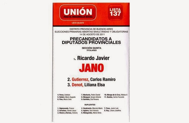 LA BOLETA POR LA QUE JANO GANO UNA BANCA FUE UN ACUERDO DE LA UCR CON DE NARVAEZ