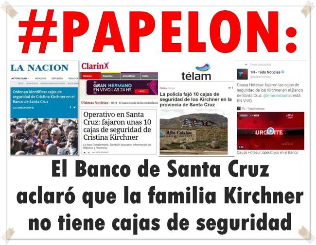 A través de un comunicado, el Banco de Santa Cruz indicó que «como es su práctica habitual, viene respondiendo en tiempo y forma a todos los requerimientos vinculados con causas judiciales» y aclaró que «que ningún integrante de la familia Kirchner posee cajas de seguridad» en la entidad, según consignó un cable de DyN.