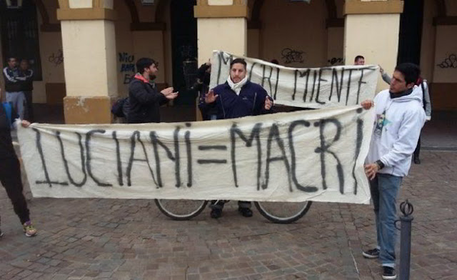 Al llegar al Museo donde se concretó el encuentro, un grupo de personas lo esperaba en la puerta con pancartas en su contra, pero Macri decidió ingresar y retirarse por la puerta trasera para evitar el incómodo momento.
