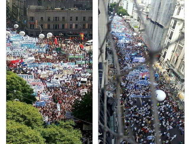 Multitudinaria movilización de los docentes contra Macri