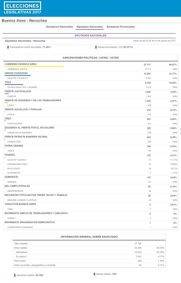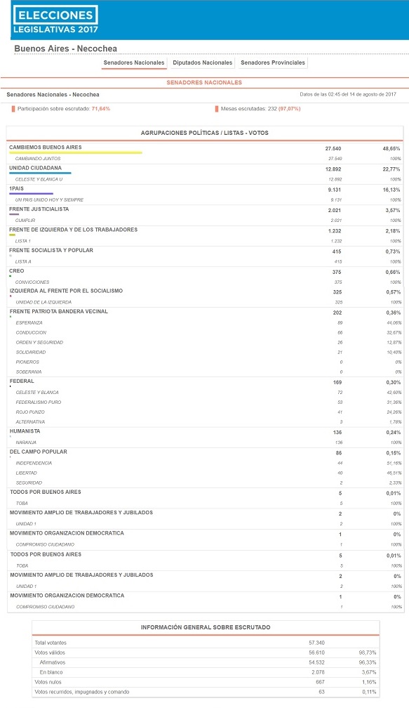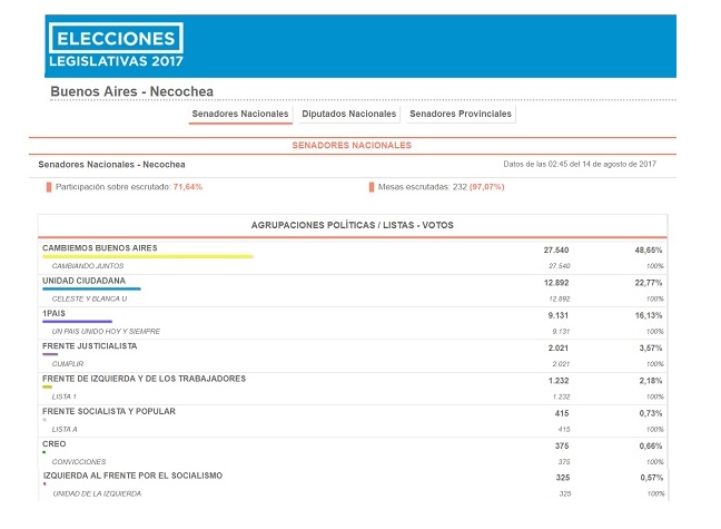 Las PASO también definieron la integración de las listas de candidatos a senadores nacionales, diputados nacionales y senadores provinciales de la 5ª sección electoral para los comicios generales de octubre de 2017.
