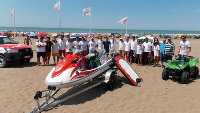 En la bajada del balneario tarsis en la playa, el intendente municipal, Dr. Facundo López, presentó el equipo del servicio de Guardavidas local de cara a la presente temporada. Asimismo, por las gestiones del jefe comunal, se observó el generoso parque automotor con que cuentan los guardavidas para los trabajos al servicio de la comunidad.