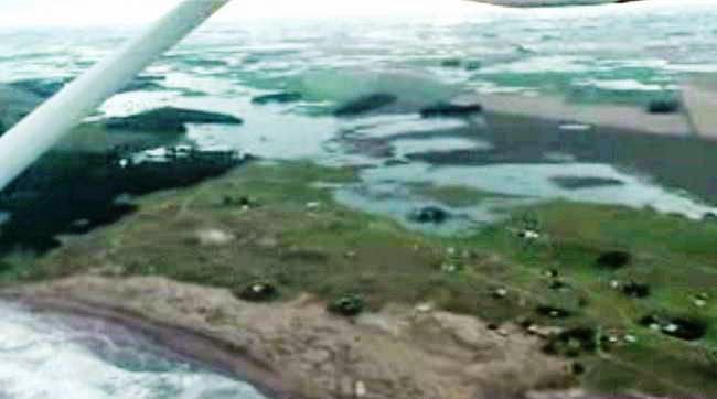 1) En los campos de la costa la superficie bajo agua es desde un 30 a un 60 porciento (60 en los lotes mas bajos o mas cercanos a los medanos, que hacen de tapon para el agua que viene de la zona mas continental). Esto provoca perdidas en la superficie de trigo y cebada.