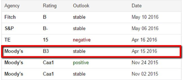 Por mediados de marzo, las calificadoras de riesgo publicaron que Argentina elevaba su estatus hasta la categoría b3. Esta oportuna circunstancia abrió el apetito de los inversores y permitió colocar suficiente deuda como para posibilitar el pago en efectivo a los fondos buitres. Junto con el cambio de categoría, las calificadores de riesgo promovían la inversión en nuestro país, instalando la expectativa de que Argentina bajaría la inflación y el déficit fiscal, cosa que no sucedió.