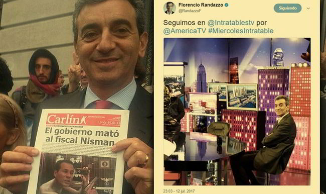 Los mismos que operan el caso Nisman contra CFK protegen escandalosamente a Randazzo. A dos años de esa visita a Intratables, Randazzo, volvió al programa esta semana y ninguno de los panelistas le preguntó sobre el tema, pero el candidato aprovechó la ocasión para tirarle flores a su ángel protector: “Está claro que la familia Magnetto es de Chivilcoy , y es muy buena gente… muy buena gente!”