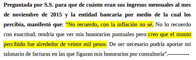 En relación a sus ingresos mensuales en la fecha en la que se realizó el robo a Michetti declaró: