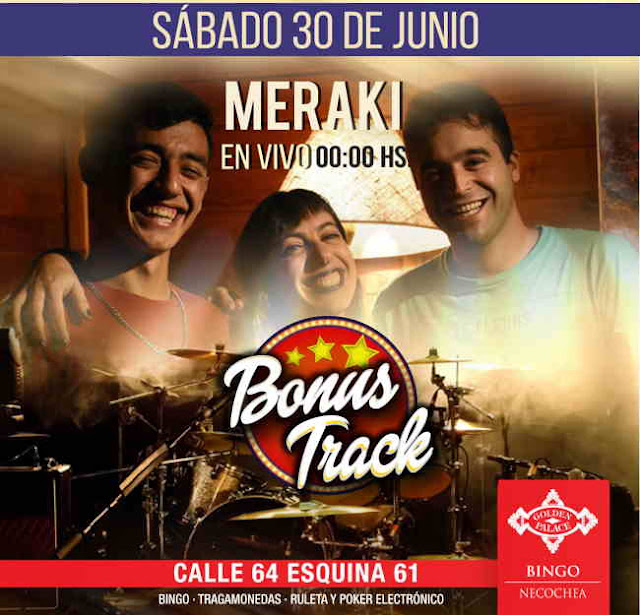 Por otra parte, a las 00hs, se presentará sobre nuestro escenario el grupo local “Meraki”. Un novedoso trío formado por Julio Luongo, Miqueas Nosek y Gisela Barón que interpretarán covers de cumbia y reggaetón en formato acústico, un estilo nuevo y delicado que no pierde la esencia alegre del género y te va a sorprender!