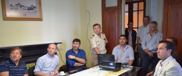 El titular del Consorcio de Gestión de Puerto Quequén, Arturo Rojas, y los organismos de control de la estación marítima Aduana y Prefectura mantuvieron una reunión de trabajo con Carlos Fernández, Director Nacional de Planificación de Seguridad de Fronteras Marítima, Fluvial y Lacustre; el Director Provincial de Seguridad Portuaria, Alejandro Semmartin; y autoridades de Interpol.