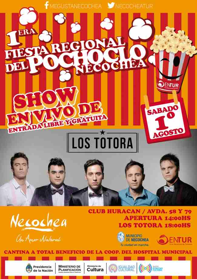 Se llevará a cabo este sábado en Necochea la Primera Fiesta Regional del Pochoclo, con juegos para niños, espectáculos para toda la familia y un cierre musical a cargo de Los Totora, en instalaciones del estadio Gigante del Club Huracán, en 58 y 79. Todo con entrada libre y gratuita.