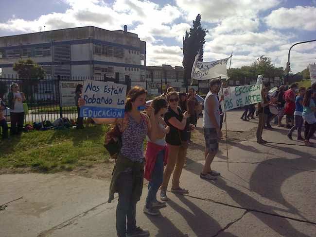 Desde hora temprana se realizó una ruidosa concentración con cortes parciales de la avenida Jesuita Cardiel, frente a la sede del Consejo Escolar, y la Escuela de Arte.