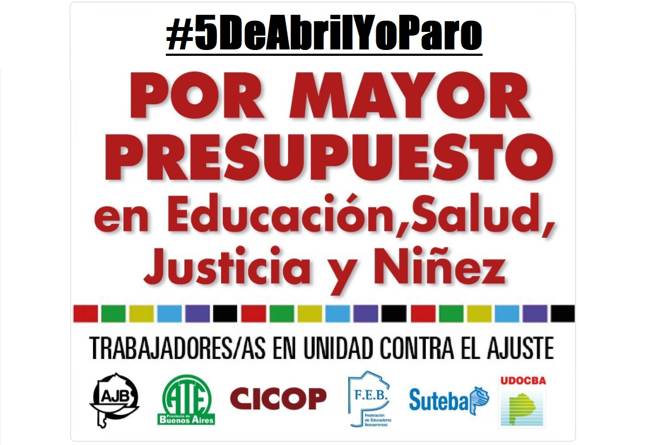 PROVINCIA: ESTATALES Y DOCENTES CONVOCAN A UN PARO EL JUEVES 5 DE ABRIL