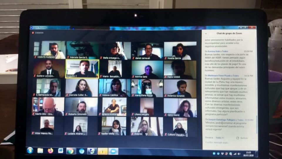Con la participación de la Secretaria municipal de Turismo, Marcela García, y el Director de Cultura, Juan Gamba, se realizó un encuentro vía Zoom organizado por el Ministerio provincial de Producción, Ciencia e Innovación Tecnológica, a cargo de Augusto Costa, junto con el resto de los municipios y sus responsables de dichas áreas, a fin de informar sobre el Fondo Municipal para la reactivación de la Cultura y el Turismo.