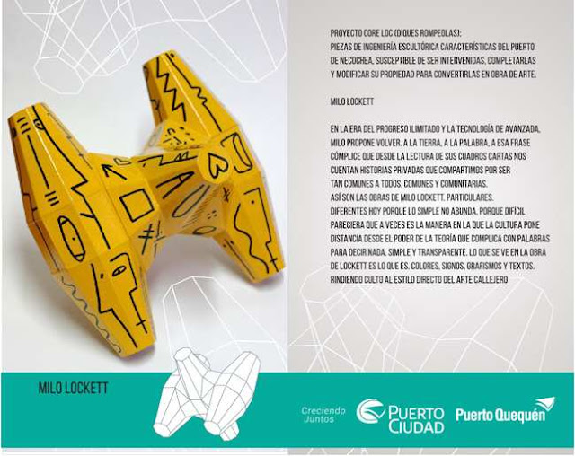 Los Coreloc, con los cuales se desarrolló la extensión de la Escollera Sur en 2007, se han convertido en un ícono de Puerto Quequén. Artistas plásticos destacados de todo el país, entre los que estará el chaqueño Milo Lockett, realizarán la intervención de piezas construidas a escala que constituirán en principio una muestra en la décima edición del CCN. Se augura la posibilidad y el desafío futuro de plasmar una de las obras a escala real.