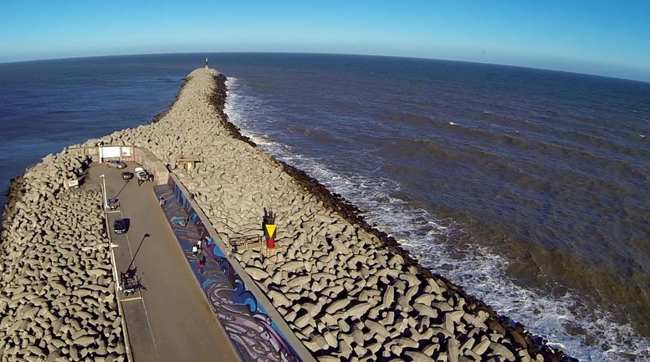 Pionero en Arte Puerto en el año 2008 con la inauguración del Mural Reflejos, Puerto Quequén dio origen a un paseo turístico de gran afluencia durante todo el año. En 2015, con la construcción de un mirador sobre la playa de los Lobos, la estética y la longitud de las pasarelas sumado a la diversidad de atractivos turísticos y naturales del lugar, dispusieron a la Escollera Sur como un espacio público de paseo, esparcimiento, recreación y descanso.
