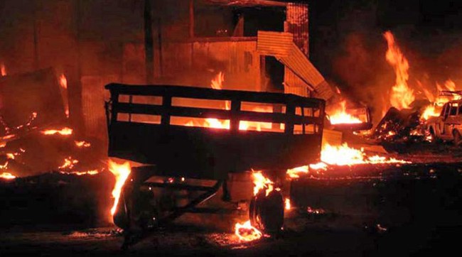 Lejos de calmarse esta situación, siguió el clima de reclamos, hasta que un grupo manifestó que había que hacer justicia por mano propia. Poco después llegaba la información que la chatarrería, la casa particular y un vehículo que se encontraba afuera, todo propiedad del supuesto autor intelectual de la agresión resultaron incendiados.