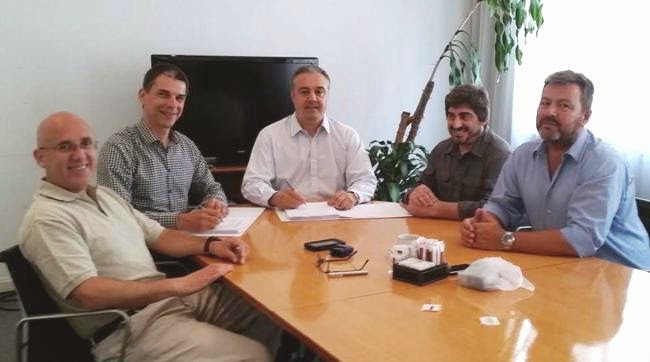 La firma del citado contrato se llevó a cabo en las oficinas de la empresa belga, con la presencia del Presidente de la administración portuaria Dr. Martín Caraffo y los integrantes del Comité Ejecutivo del Fideicomiso, Dr. Fernando Ciancaglini y el Dr. Marcelo Rodríguez Olivera.