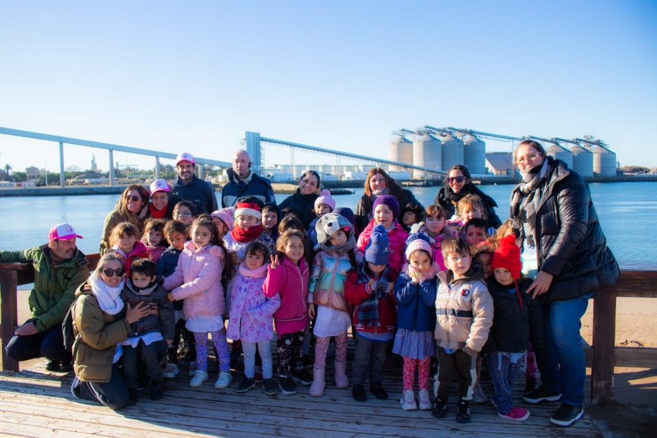 El martes 1° de julio por la tarde, el puerto abrió sus puertas a estudiantes de primer grado de la Escuela Primaria N° 4 y del preescolar del Jardín de Infantes N° 902. Ambas instituciones habían trabajado previamente con los materiales educativos del programa “El puerto va a la escuela”, y fueron recibidas por la División Murguita, que acompañó la visita con actividades lúdicas y pedagógicas especialmente diseñadas para las infancias.