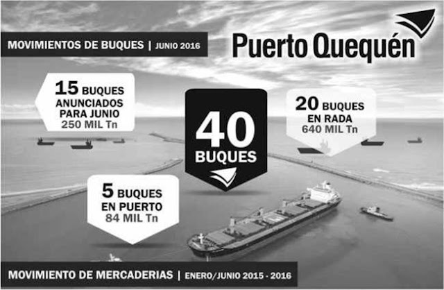 Asimismo, el acumulado anual del total de mercaderías operadas en la estación marítima de Quequén alcanzó los 3 millones y medio de toneladas, superando en un millón al mismo período del año pasado. Tendencia de notable incremento en la operatoria portuaria que la cadena agroexportadora de Puerto Quequén sostiene durante el primer semestre de 2016.