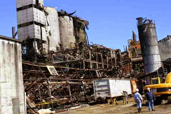Allí, alrededor de las 13 hs., se produjo el estallido de un silo que derivó en un incendio, produciendo dos muertos y más de una veintena de heridos.
