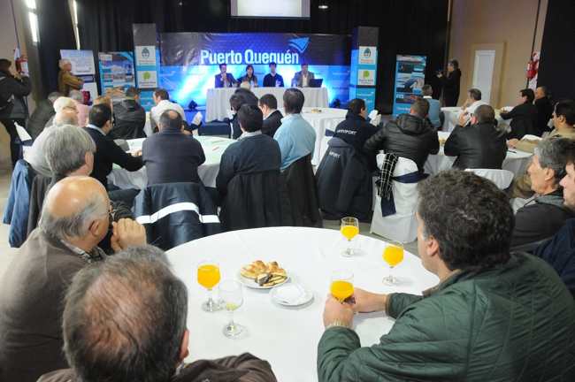El Presidente del Consorcio de Gestión del Puerto de Quequén, Dr. Arturo Rojas, junto a la Directora Provincial de Planeamiento Portuario, Lic. Marisa Martínez, y el Asesor de Gabinete de la Subsecretaría de Actividades Portuarias, Ing. Gustavo Anschütz, presentaron el programa de desarrollo del Sistema Portuario Bonaerense.