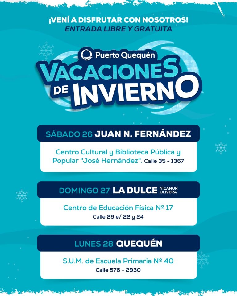 Estas vacaciones de invierno, el Consorcio de Gestión de Puerto Quequén invita a disfrutar de una propuesta itinerante que combina arte, educación y entretenimiento para toda la familia. Bajo la consigna de acercar el puerto a la comunidad, la iniciativa recorrerá distintas localidades del distrito con actividades gratuitas y abiertas al público.