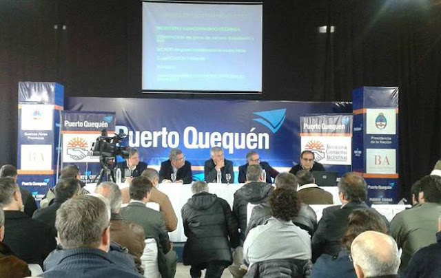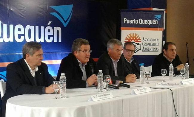 Con la presencia del ING. Mario Goicoechea (presidente del Consorcio de Gestión de Puerto Quequen) y de las máximas autoridades de la Asociación de Cooperativas Argentinas se firmó la carta de intención de una importante inversión en nuestra estación Portuaria. Según Julio Iocca (Director comercial y de logística de ACA) el emprendimiento consiste en una primera inversión de 80 millones de dólares y luego de 120 millones. Estuvieron presentes Óscar Muzzi (presidente de ACA), Eduardo Macaya (secretario) y Osvaldo Perino, responsable de la planta ACA Quequen.