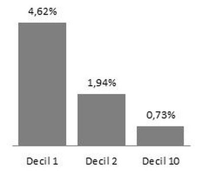 Dicho de otro modo, a los hogares del decil 1 el tarifazo les arrebató el 4,6% de sus ingresos, al decil 2, el 1,9% y al decil 10, sólo el 0,7%.