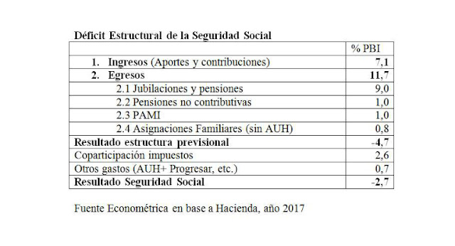 El estudio de Econométrica considera que en el caso particular de Argentina «la situación se agravó significativamente durante los últimos años por medidas que condujeron a un fuerte incremento del gasto público del Gobierno Nacional, que pasó del 15% al 26% del PBI, con un sistema previsional cuyo déficit se elevó de 1,5% a 4,7% del PBI, en un contexto de altos índices de pobreza.»