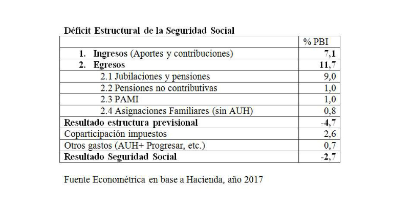 El estudio de Econométrica considera que en el caso particular de Argentina «la situación se agravó significativamente durante los últimos años por medidas que condujeron a un fuerte incremento del gasto público del Gobierno Nacional, que pasó del 15% al 26% del PBI, con un sistema previsional cuyo déficit se elevó de 1,5% a 4,7% del PBI, en un contexto de altos índices de pobreza.»