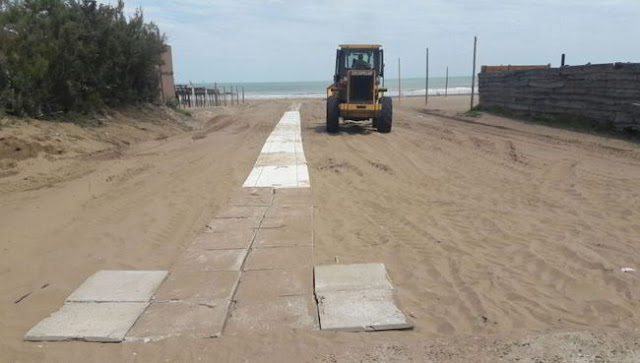 De acuerdo a lo planificado semanalmente por la Secretaría de Planeamiento, Obras y Servicios Públicos, se realiza en el sector de la playa local el mantenimiento de las bajadas públicas, que fueron armadas y colocadas la semana anterior de cara a la temporada estival que se avecina.