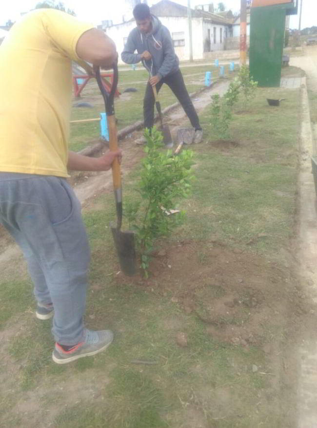 La Dirección Forestal del municipio, dependiente de la Secretaría de Planeamiento, Obras y Servicios Públicos, lleva a cabo distintas tareas de mejoramiento y embellecimiento en la plaza del Barrio General San Martín.
