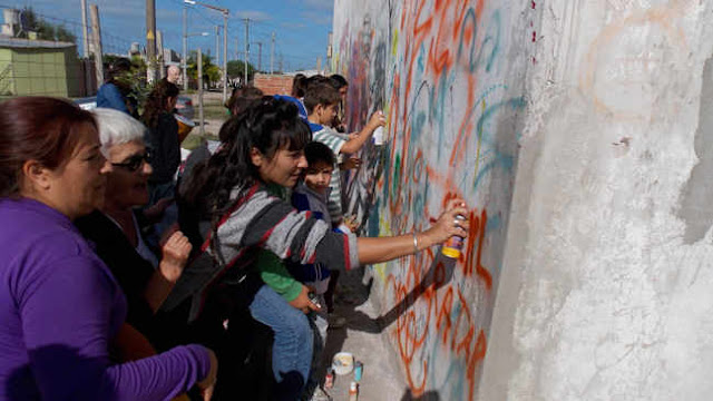 Sobre la obra en sí, el artista responsable, Hernán Ricaldoni, explicó que “consta de dos momentos, es del caos al orden, el barrio va a poder escribir sobre esta pared, decir, manchar con pintura, y cuando quede la textura de bronca y de descarga sobre el muro, vendremos la semana que viene y a todas esas manchas y ese caos lo vamos a ordenar en una imagen”.