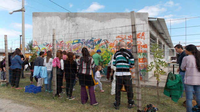 La jornada sirvió para que las familias del barrio se acercaran a expresar sus sentimientos a través de la participación artística sobre una de las paredes del CIC, que está ubicado en 92 bis y 49.