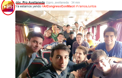 La SUBE fue un invento de la administración K. Pero las imágenes muestran que un par de personas asistieron a las marchas en colectivos escolares con banderas del PRO. ¿Los micros escolares tendrían la máquina lectora de tarjetas SUBE?