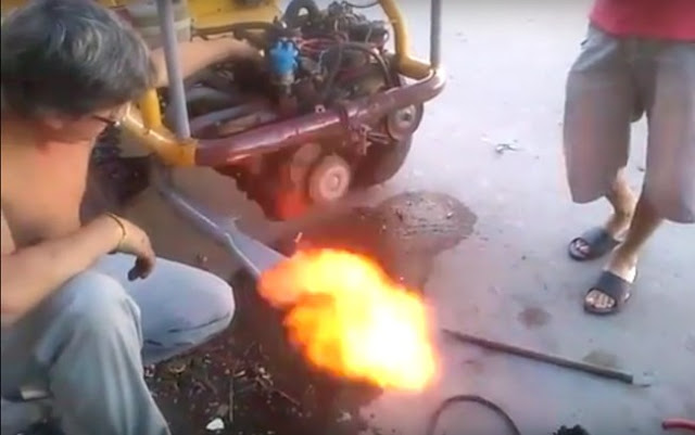 Otra muestra más del ingenio e inventiva de los vecinos de nuestro pago: inventaron un vehículo lanzallamas contra la inseguridad.