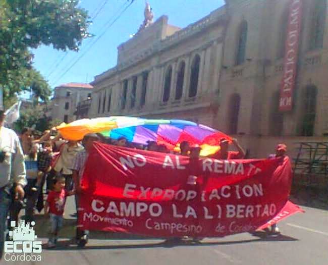 Entre los departamentos de Cruz Eje e Ischilin, se encuentra el campo “La Libertad” de 12500 héctareas, habitado por varias generaciones de alrededor de 50 familias campesinas, fue comprado en remate judicial , a pesar de que la justicia reconoció a los trabajadores del campo como habitantes del lugar. Todo indica que los compradores piensan usar la violencia para policial para desalojar a las familias. El Movimiento Campesino de Córdoba esta en alerta y movilización.