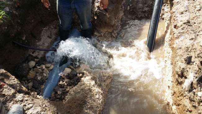 Se rompió caño en Quequén y ya trabajan para repararlo