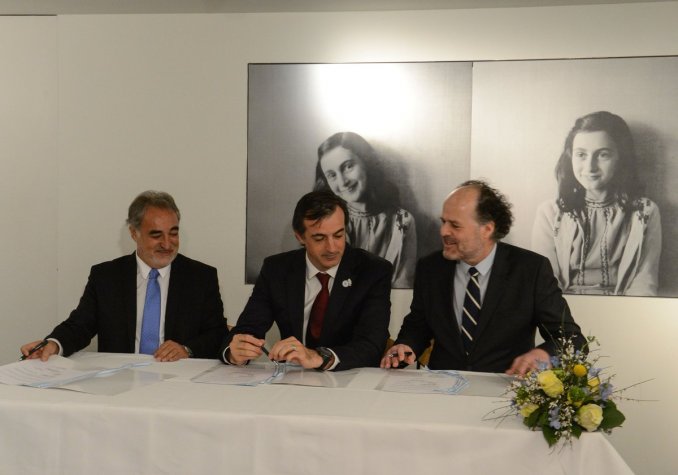 Su discurso tuvo lugar luego de la firma en Ámsterdam un convenio de cooperación con la Casa de Ana Frank, por el cual se enseñará en Argentina el legado de la niña holandesa asesinada por el nazismo. El secretario de Derechos Humanos, Claudio Avruj, también estuvo presente para firmar.