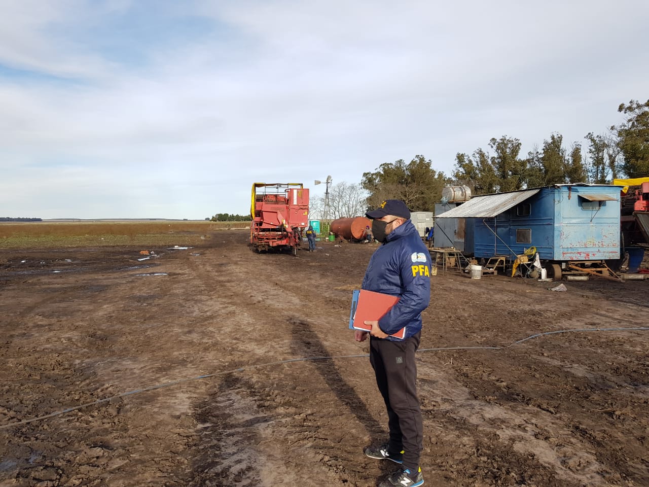 La Policía Federal Argentina realizó un imponente despliegue en un allanamiento por trata de personas para explotación laboral (Ley 26364) en un establecimiento rural en el partido de Lobería.