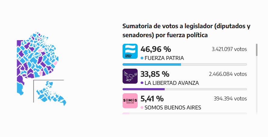 Por primera vez en la historia, la provincia de Buenos Aires decidió desdoblar sus elecciones legislativas 2025 de las nacionales, y el peronismo alcanzó un triunfo histórico, algo que no sucedía desde 2005. Con el 80% de las mesas escrutadas, el oficialismo bonaerense se aseguró al menos el 46% de los votos en toda la provincia.