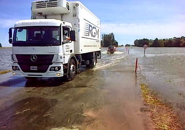 Los vehículos con precaución atraviesan alrededor de 200 metros de ruta cubierta con 20 o 30 centímetros de agua, permitiéndose el paso de a una mano por vez.
