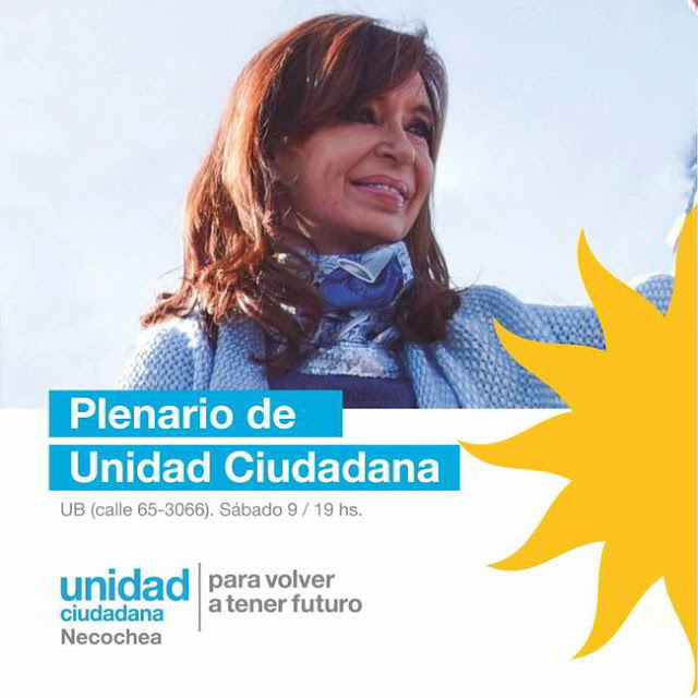 Este sábado 9 de septiembre se llevara a cabo un Plenario de Unidad Ciudadana con la presencia de los candidatos de la lista que postula a Andrea Cáceres a nivel local y a Cristina Fernández de Kirchner en el plano nacional, junto a militantes componen el espacio. Esto tendrá lugar en la unidad básica ubicada en calle 65-3066 desde las 19 horas.