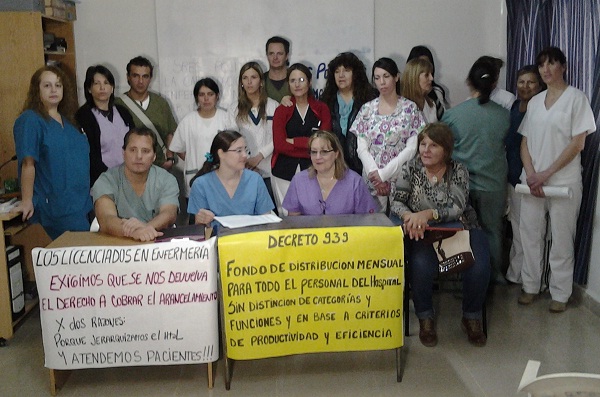 Llegamos a tomar esta medida ya que durante todo el año hemos presentado notas, iniciado expedientes sin siquiera una respuesta, hemos tenido audiencias con el Sr. Vidal , la Comisión de Salud del Concejo Deliberante, con las diferentes autoridades que han pasado por la Secretaria de Salud y con la Sra. Secretaria de Gobierno Ana Asa, quien como fundamento para no pagarnos el arancelamiento nos dijo que el municipio no contaba con recursos (falso ya que el arancelamiento es dinero de las obras sociales que se reparte entre todos los trabajadores de la salud) y finalmente nos dijo en la última audiencia que era una decisión política no pagarle el arancel a los enfermeros y licenciados que cobraran el título, esto significa que el municipio no apoya la capacitación, no le interesa la salud de la comunidad.