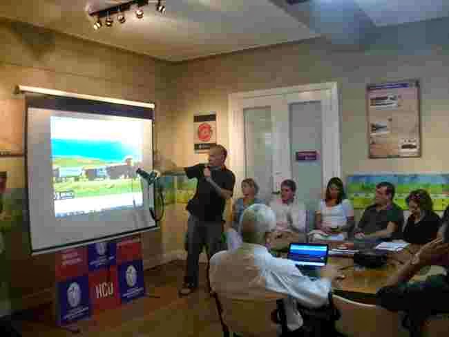 A pesar de que durante el encuentro se mostraron diapositivas de fotos donde se evidencia la presencia de una importante cantidad de camiones llevándose arena de nuestros médanos, el funcionario expresó que no puede «certificar esas fotos».