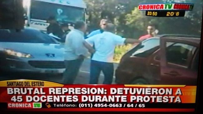Tras una gran mampara de impunidad, ésa que ampara la invisibilidad de los nuestros para evitarle el mal trago al noticiero, hoy gritaron los maestros de Santiago del Estero, junto a las organizaciones del campo popular, que jamás podrán reducir a fuerza de canas y represión: ¡Dejen de invertir en picanas, lo que falta para educación!