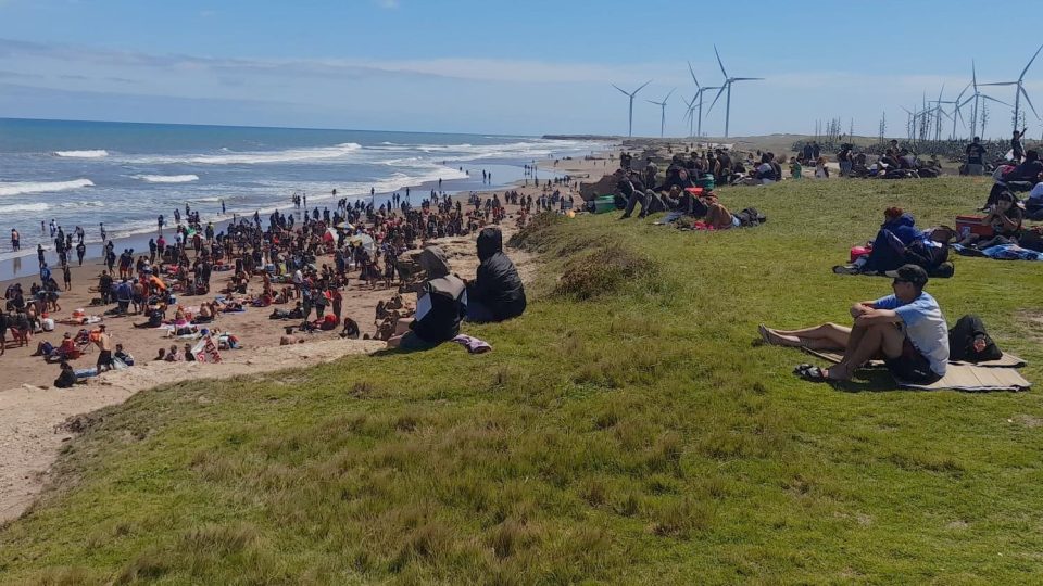 El Jefe de Guardavidas describió que “el público se desplazó mucho hacia el Camping de Las Grutas, donde había más de 60 micros y llenaron el sector. Hubo que reforzar ese lugar con más personal de guardavidas porque había casi 3 mil personas allí”.