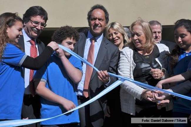 «Nos comprometemos, con mi compañero Carlos Zannini, a seguir avanzando en ciencia, en tecnología y en continuar construyendo escuelas técnicas y agrarias» Durante el acto, Scioli se comprometió a “cuidar todos los logros en materia educativa, de ciencia y de tecnología” y destacó al candidato del Frente para la Victoria para la gobernación bonaerense, Aníbal Fernández, como “un hombre preparado para poder, sobre estas universidades y esta inversión histórica en educación, seguir construyendo hacia adelante”.