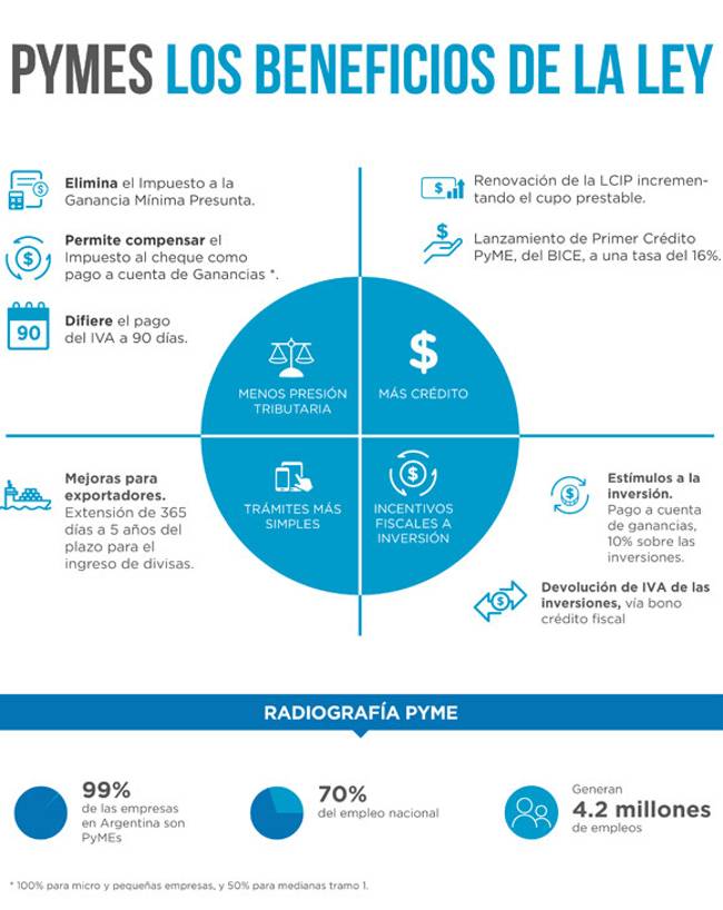 Tiene por objetivo que ninguna pequeña o mediana empresa quede afuera de los beneficios que otorga la nueva Ley Pyme, mediante la cual pueden aliviar sus cargas fiscales o acceder a financiamiento, entre otras ayudas promovidas por el Ministerio de Producción nacional para el crecimiento del sector.