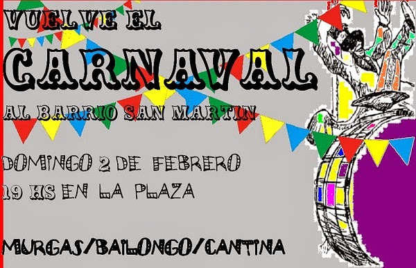 Las vecinas y vecinos del Barrio Gral. San Martin queremos invitarlas e invitarlos a una tardecita noche de carnaval, de murga, de disfrute.